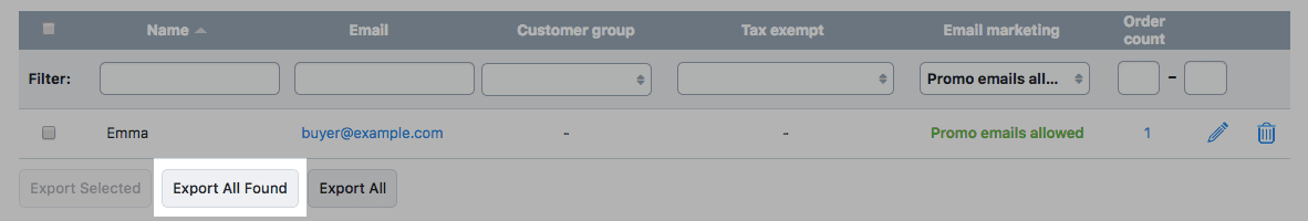 - Click Export All Found below the customer list: