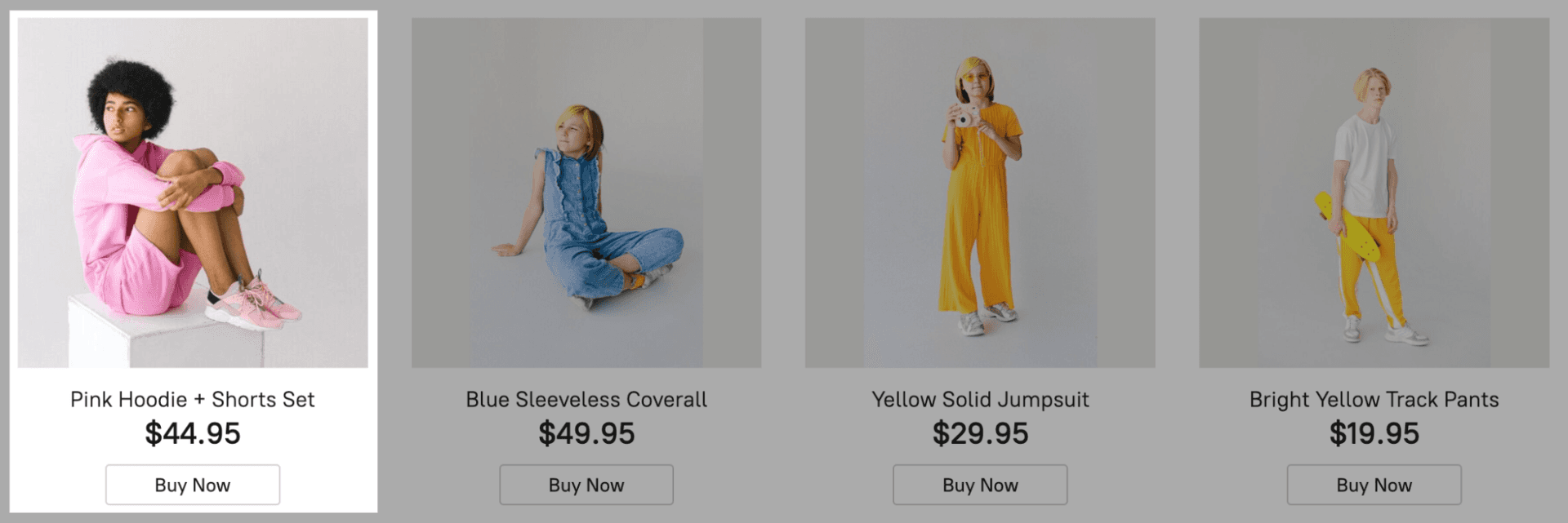 You can adjust image size and aspect ratio, hide or display elements like price, SKU, or the “Buy Now” button, and more using built-in design settings. For example, portrait image orientation is great for showing apparel, and large-size images are best for showcasing jewelry details, home decor elements, and so on.