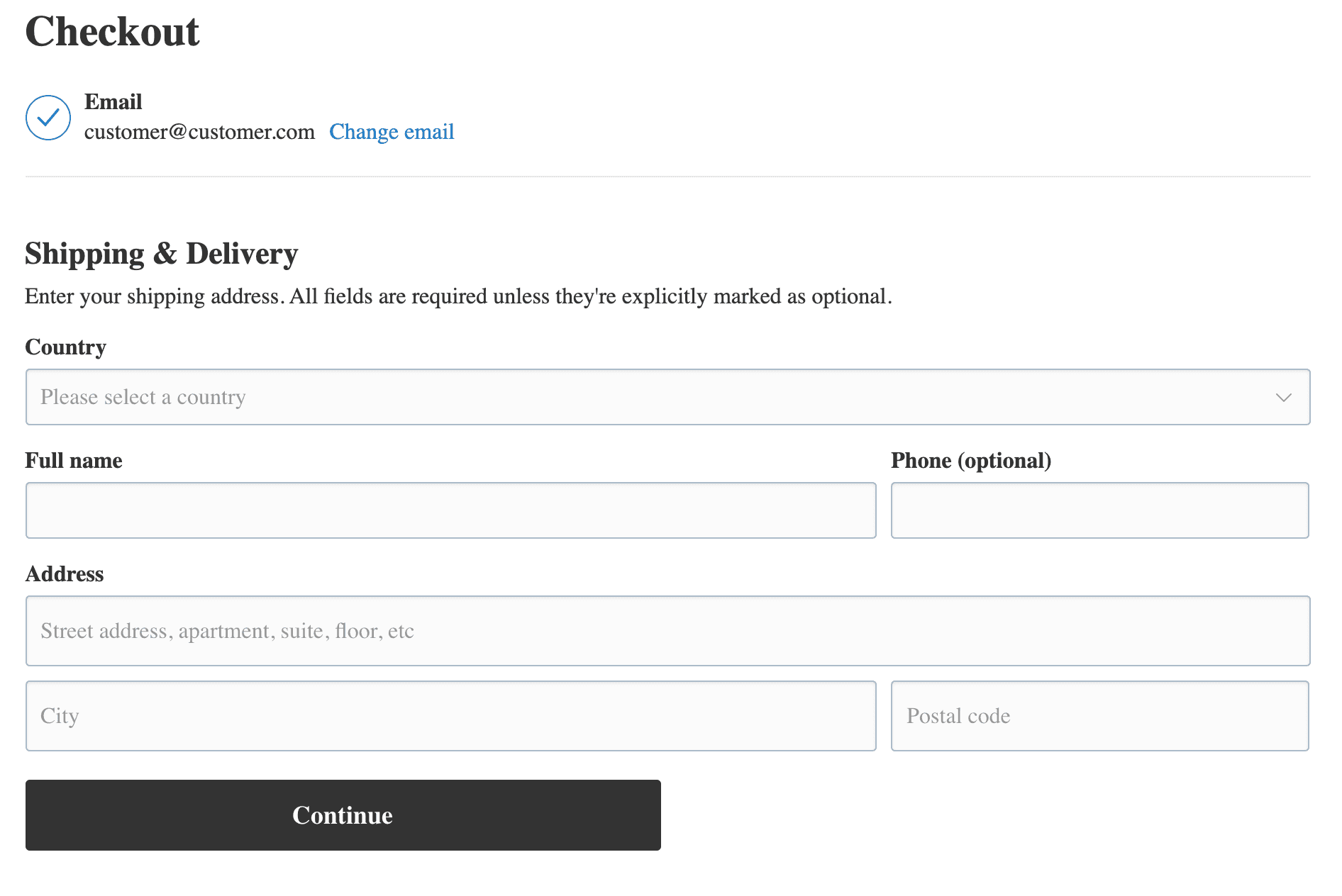 Enter the customer’s email address into the field: