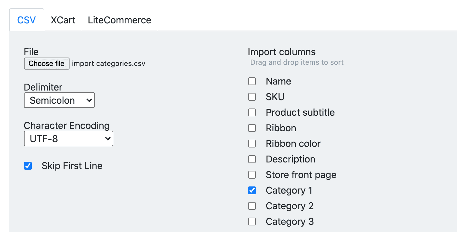 You can also import product categories using X-Сart format or LiteCommerce import format (opens in a new tab).