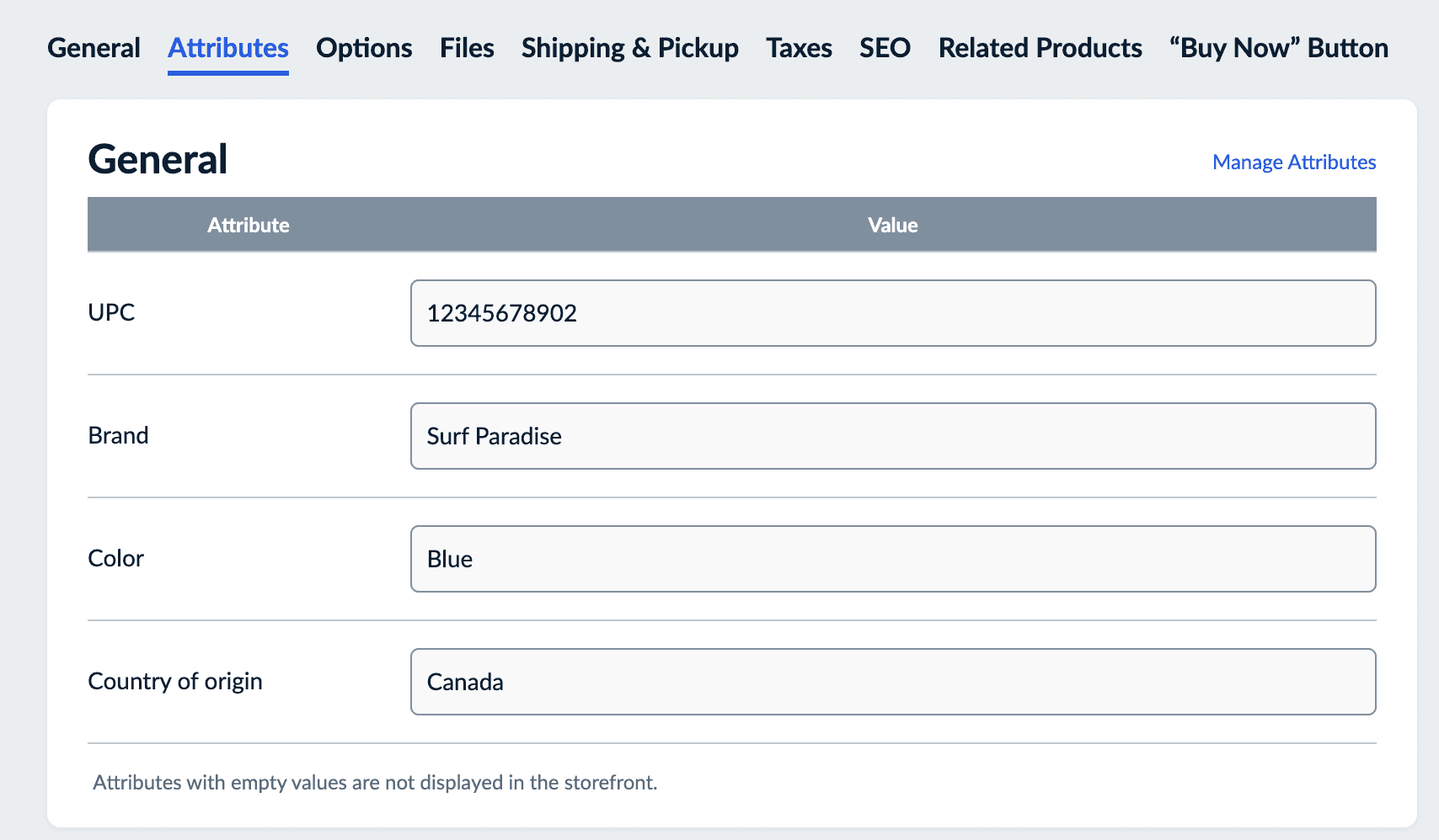 You can import new products with attributes like UPC or Brand, or you can import attributes for products that already exist in your store. If a product already exists in your store, you can add attributes to it without having data on the product they belong to in the file.