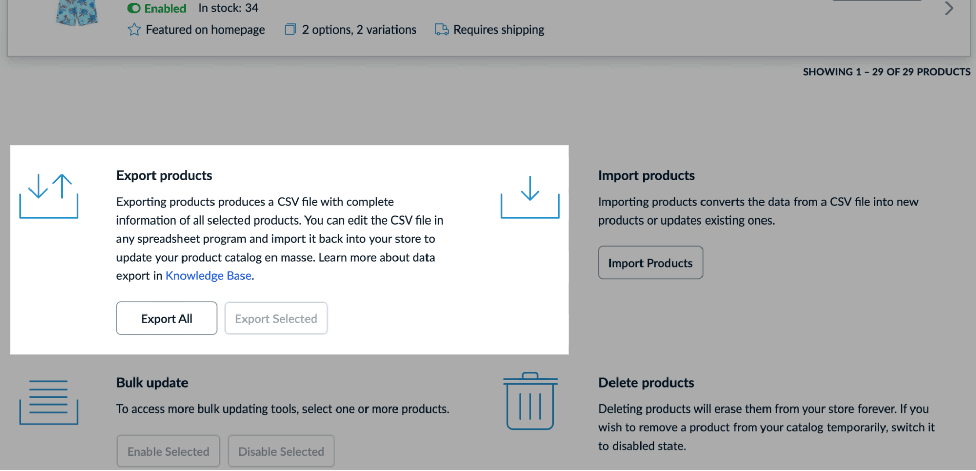 The easiest way to create a CSV with updates for existing product attributes is to export your products, edit the file and then save it again as a CSV. To make managing the file easier, you can delete all the unnecessary columns except for the product identifier column (SKU or ID, or both) and the columns with the attributes that you want to update. After that, you can simply upload the file back into your store.