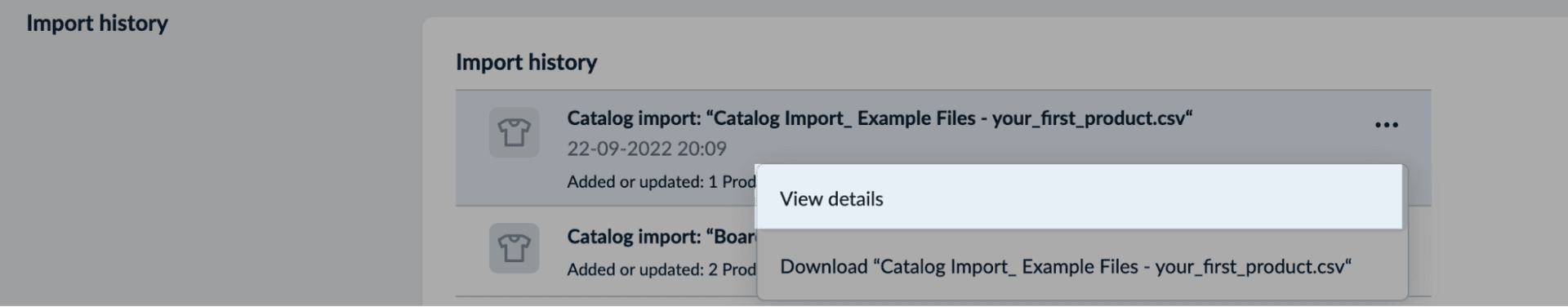 You can always look into the last 20 importing sessions. For example, if you want to see what products and categories you updated the last time and if there were any errors. This way, you can track changes in your store and have more control over your import.
