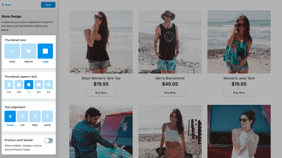 Large images are a good choice for showcasing your products in every detail. Medium images are suitable for most products, while with small images you can fit more products per page. Several aspect ratio options provide a flexible way to best display horizontal, vertical or square images.