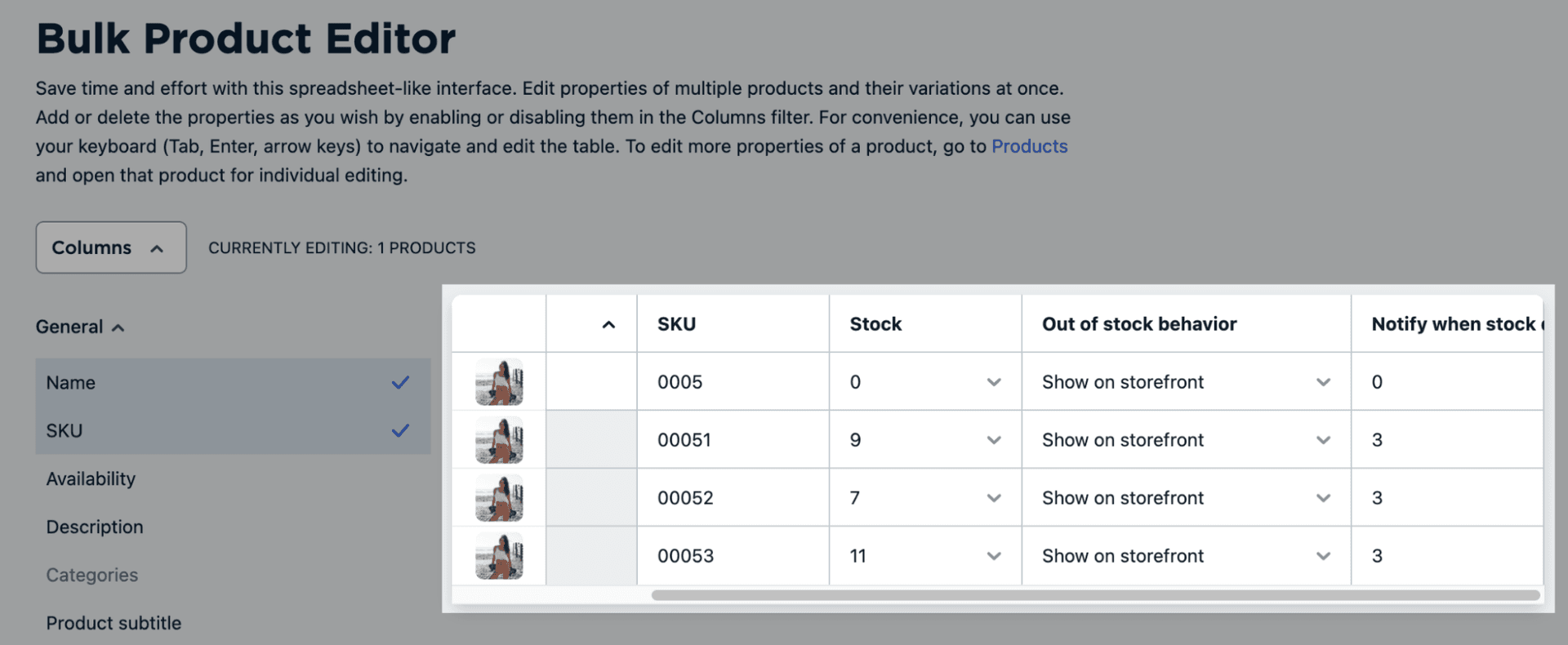 - Second, you can control the stock of your products and product variations using Bulk Product Editor. As the Bulk Product Editor allows you to view multiple products and their stock all at once, you can also use this page to check inventory. Just choose the products you need (or select all the items in your store) for editing in Catalog → Products, enter the Bulk Product Editor and scroll the table down to see whether you need to refill the stock.