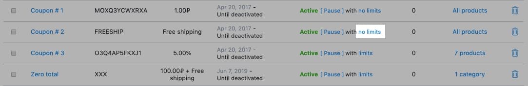 You can specify the number of times a code can be used, a minimum order amount to use a discount, for whom the code is valid, and to which products or categories the discount can be applied. For a “Free shipping” or “Free shipping + discount” coupons it’s possible to specify a certain shipping or delivery method.