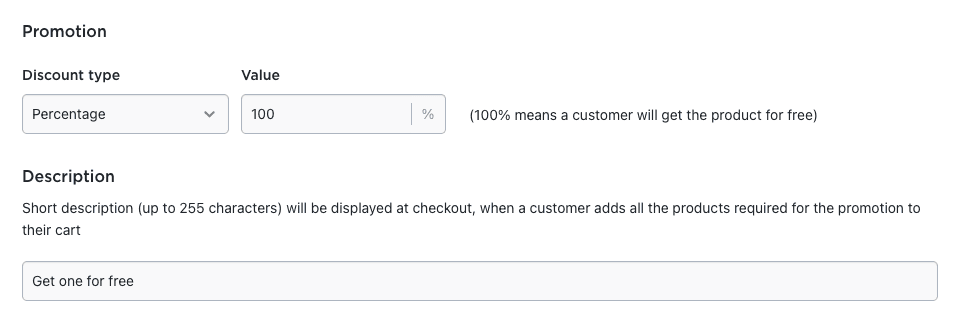 In the first section, choose the discount type and give your promo a name: