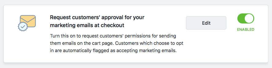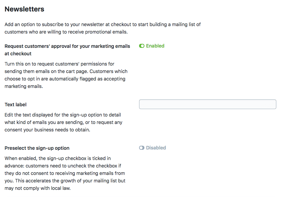 - Enable the Request customers' approval for your marketing emails at checkout option: