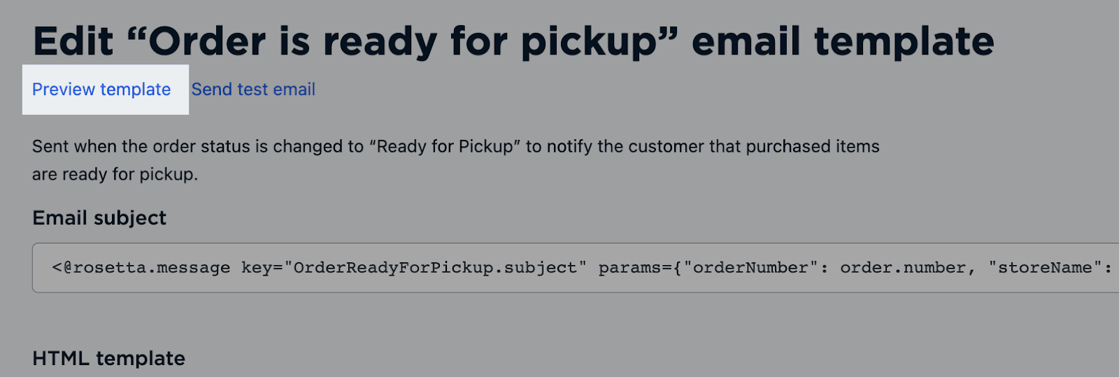 You can click the Preview template link in the top left corner to see a sample email. Every part of code in the template is responsible for a specific part of this email.