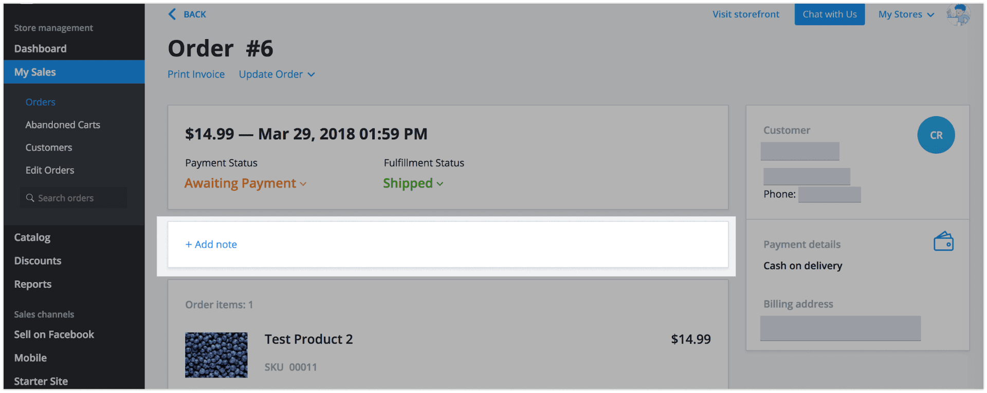 Store managers can add internal notes to orders. These notes can be used for special instructions like preferred delivery date and time. Order notes can also include comments that may help improve processes for your business such as customer feedback or the reason for a refunded or canceled order.