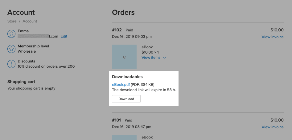 Besides, the download links for ordered products are available to buyers in their customer accounts in your store: