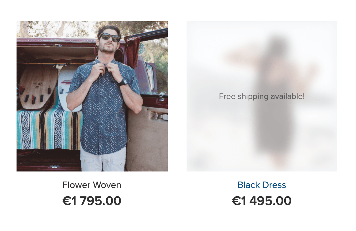 By default, subtitles are displayed on your product list as fixed, always visible text. But you can choose to display short descriptions only if your customer hovers a mouse over the product picture in the grid. The rest of the time subtitles will be invisible on your storefront: