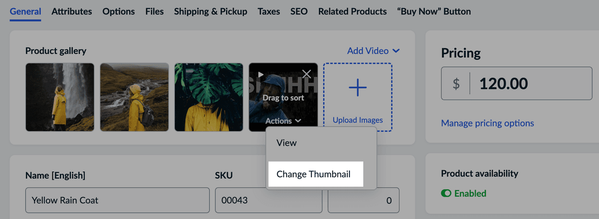 - Click and drag the video thumbnail to the first place in the product gallery.
