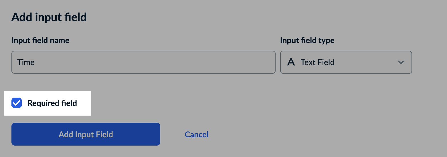 - Add the second input option named “Time” that consists of a simple text field. This is where your client can let you know the time at which they wish to meet with you. Make sure both of these fields are marked as required: