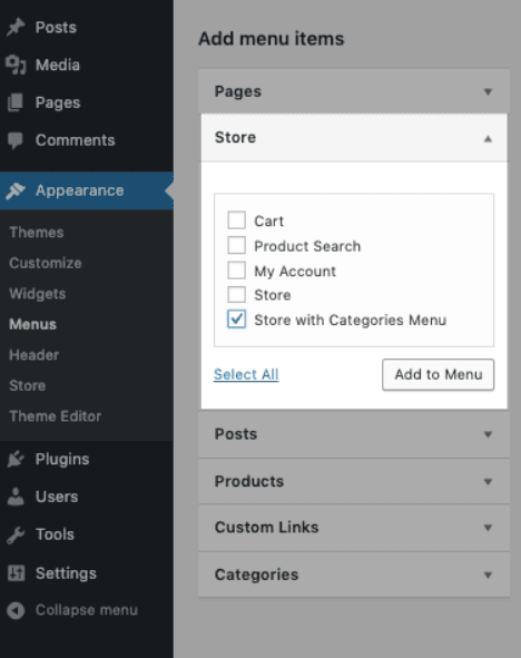 Here is how to add your store categories to the WordPress website menu: