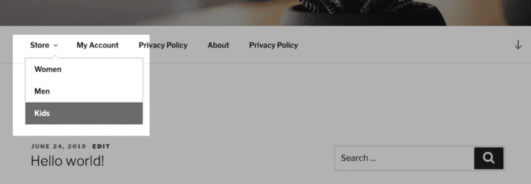 If products in your store are divided into categories, you can show store categories in the drop-down of the website menu. This will improve your website navigation and will help customers find products faster.