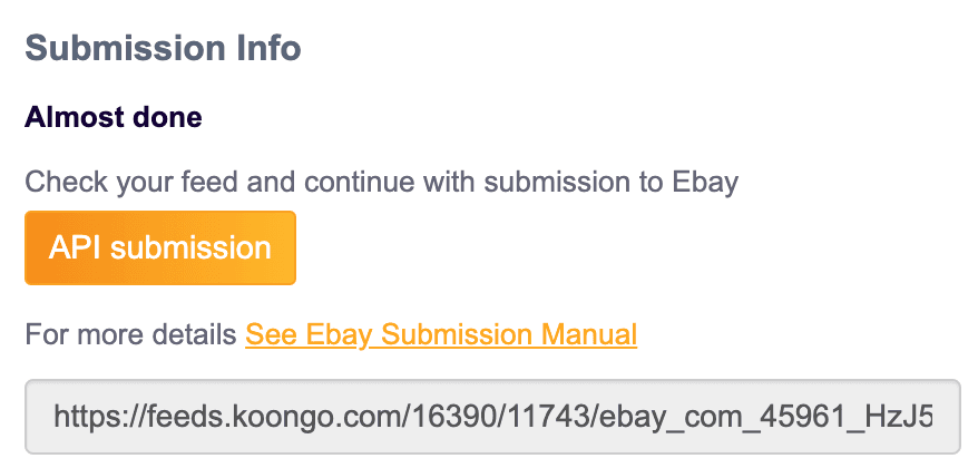 The Product feed contains information about your products’ details and categories. Since eBay marketplace has its own categories, you need to adjust your products info during the feed setup so that your catalog and eBay product details match.