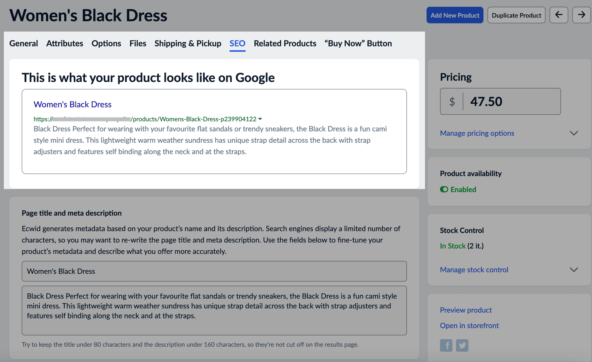 Check how the product will look on Google when indexed: