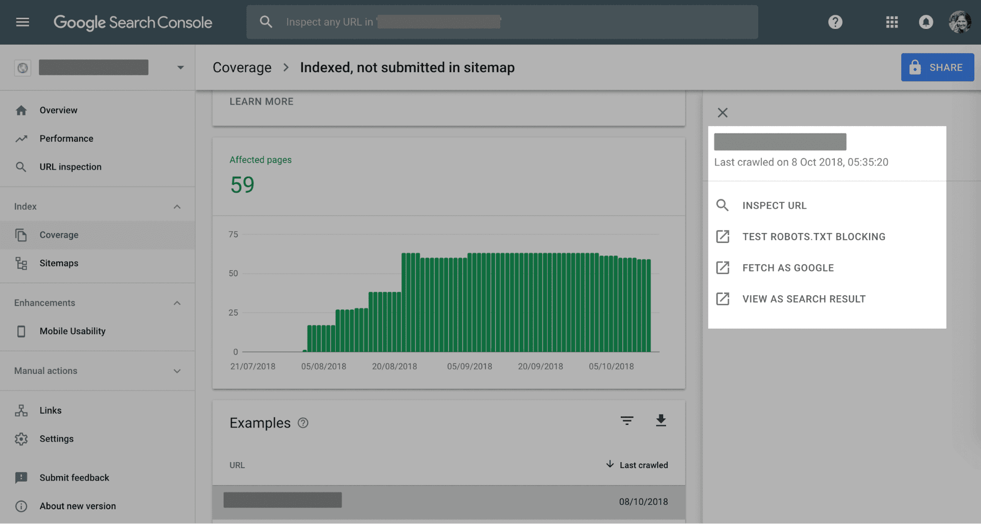 Displays successfully indexed pages.