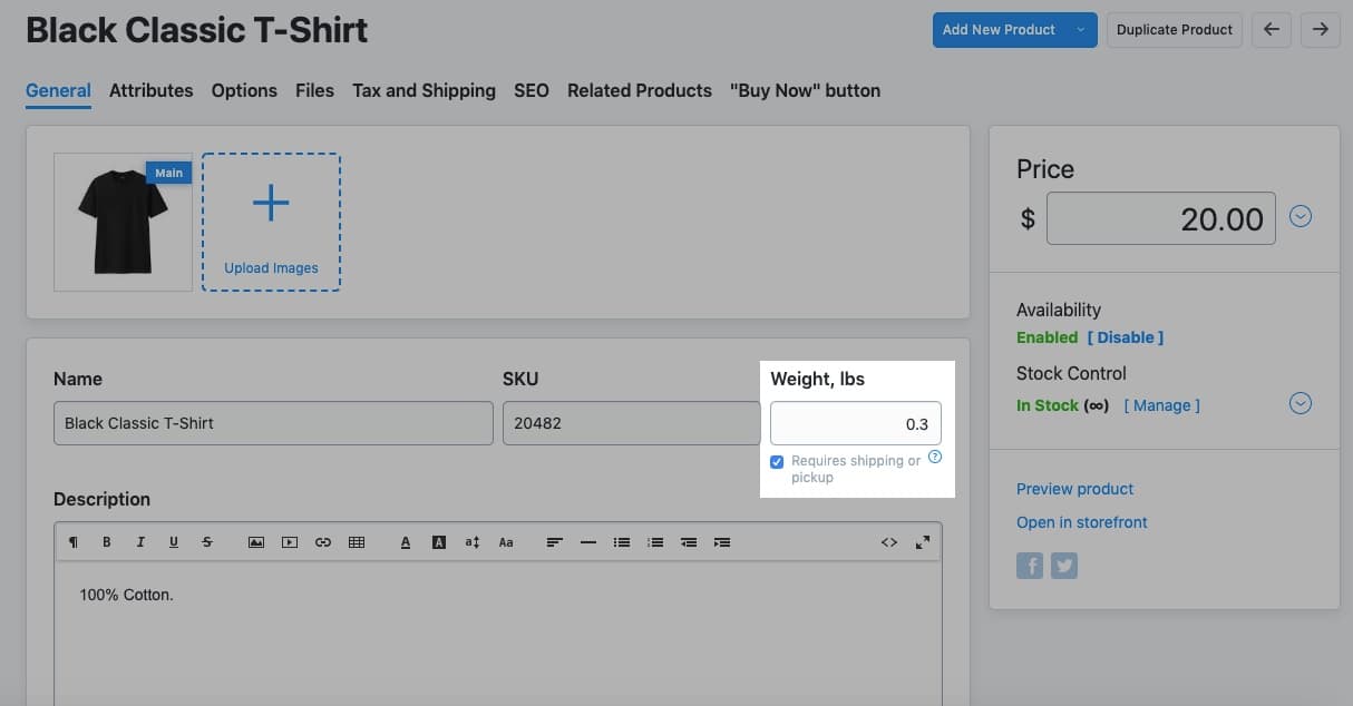Step 1. Mark products as shippable and enter the product’s weight