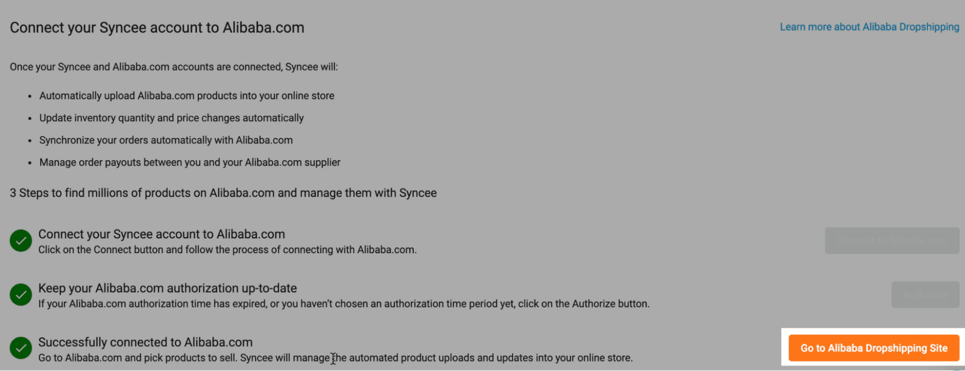You can learn more about Alibaba dropshipping with Syncee (opens in a new tab) in their help center.