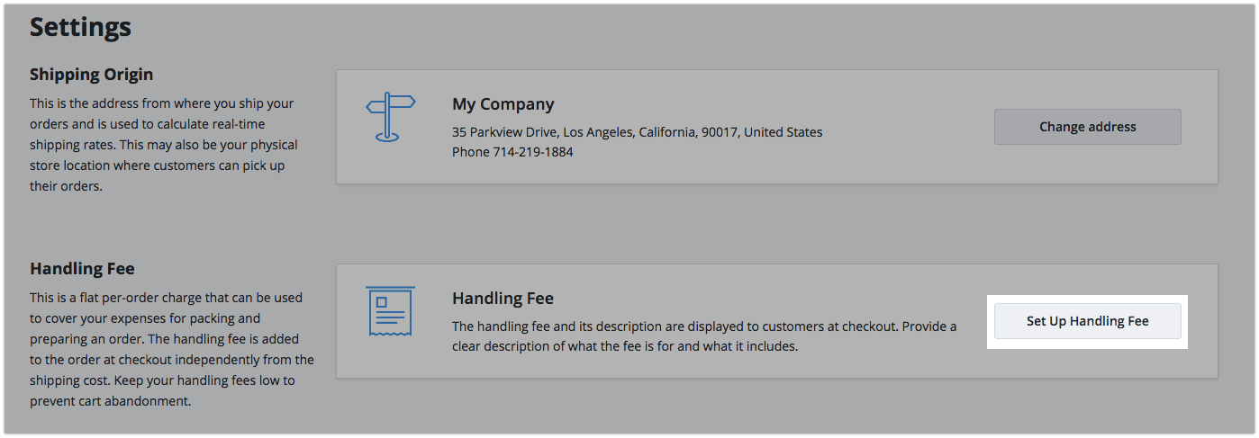 - Click Set Up Handling Fee in the Settings block.